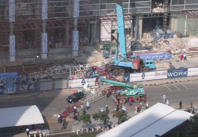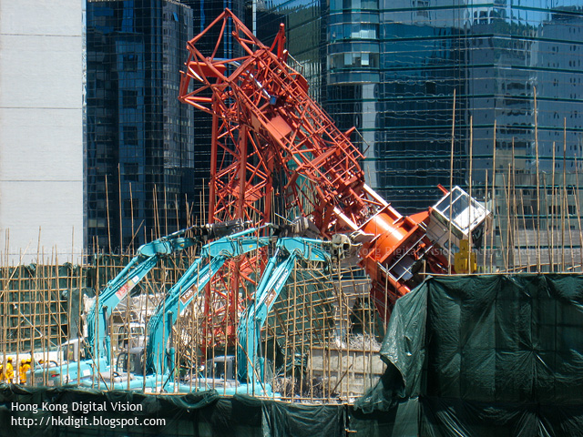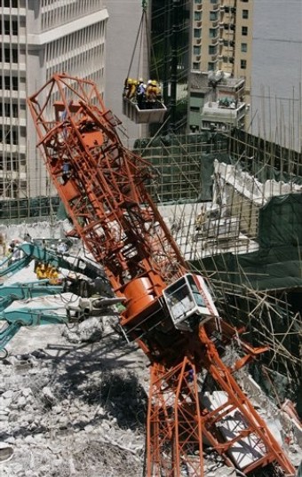 Hong Kong, 2007 - Wolff ( luffer ) tower crane collapse during climbing. ( 2 dead, 5 injured )