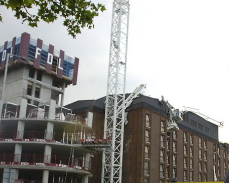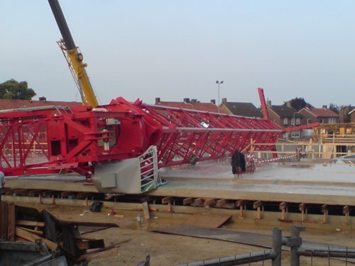 Netherlands, 2008 - Wilbert tower cranes collapsed. Operator was seen jumping from crane, unfortunately Link to lots of pictures. "VIEW HERE"