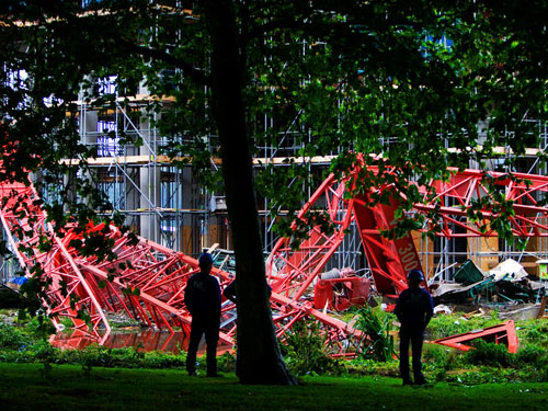 Germany, 2003- 2 Liebherr tower cranes collapsed due to foundation failure of one crane. ( 2 Dead, 3 Injured ). View more pictures. "VIEW HERE"