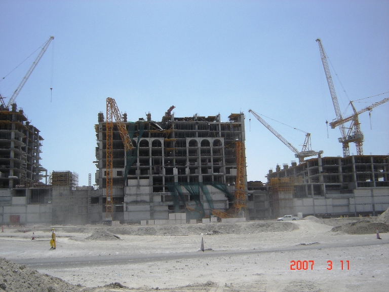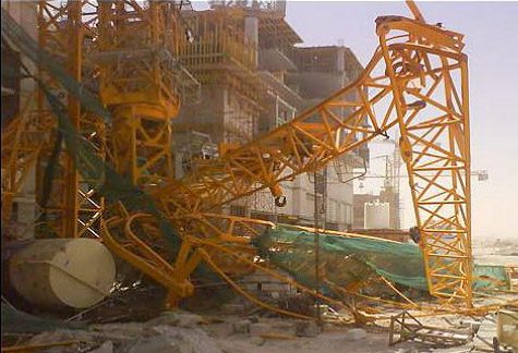 Croyden, 2007 - Comedil tower crane - top rotating structure comes off during climbing UAE, 2007. Two Suncranes collapse. The crane on the left was "climbing" and fell into the other!