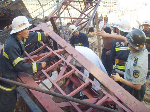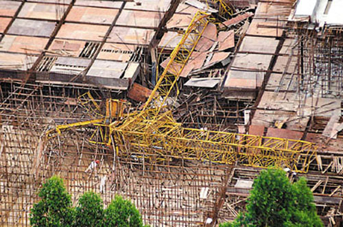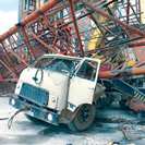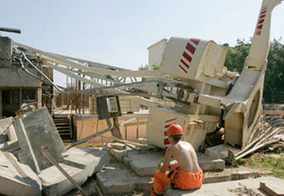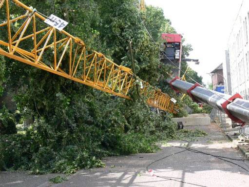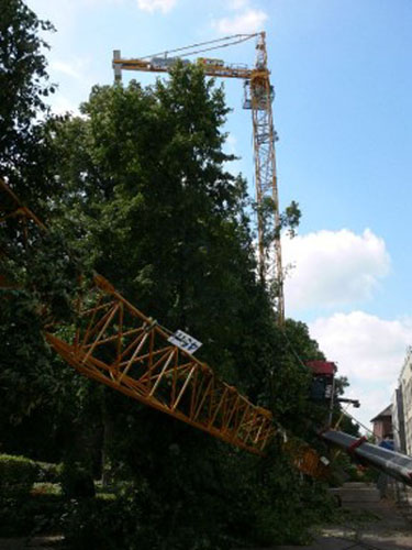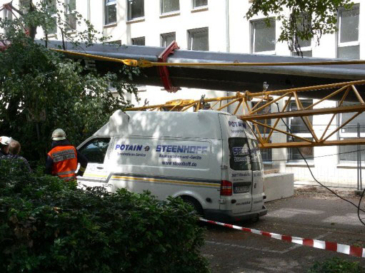 Germany, 09 - Potain - dismantling 57m jib accident.