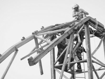 Story goes that the operator an a project engineer argued over climbing procedures, the engineer