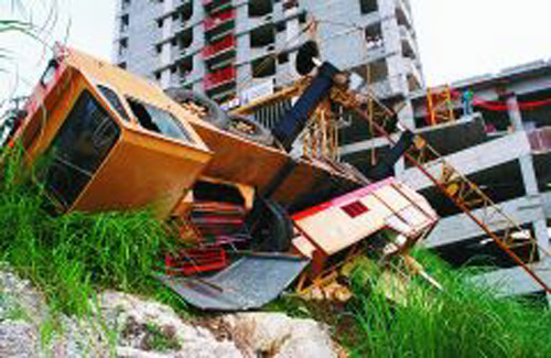 China, 08 - Earthquake severly damages up to 20 tower cranes. VIDEO VIDEO