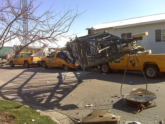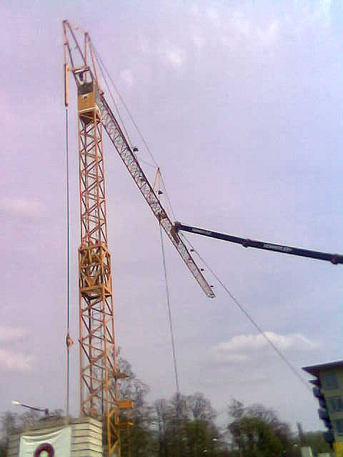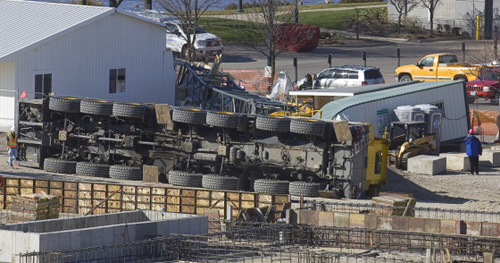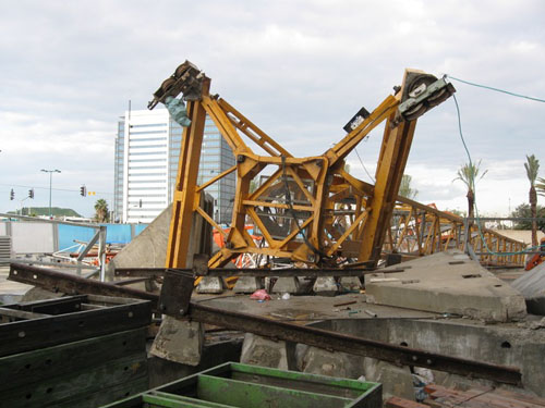 USA, 09 - 550 ton crane tipped over preparing to erect tower crane