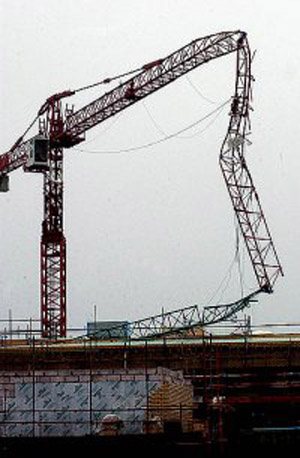 Worthton, 2005 - A Wolff 320BF( Luffer ) tower crane collapsed into another crane during dismantling.
