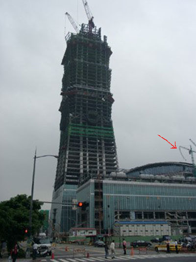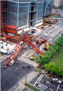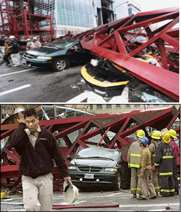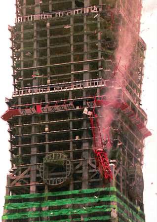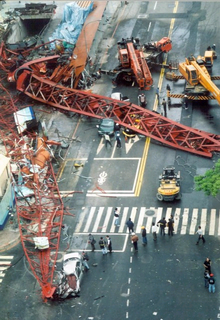Taiwan, Taipei: 2002 - "TWO" Favco-440D Tower (Luffer) Crane collapse from the 56th floor
